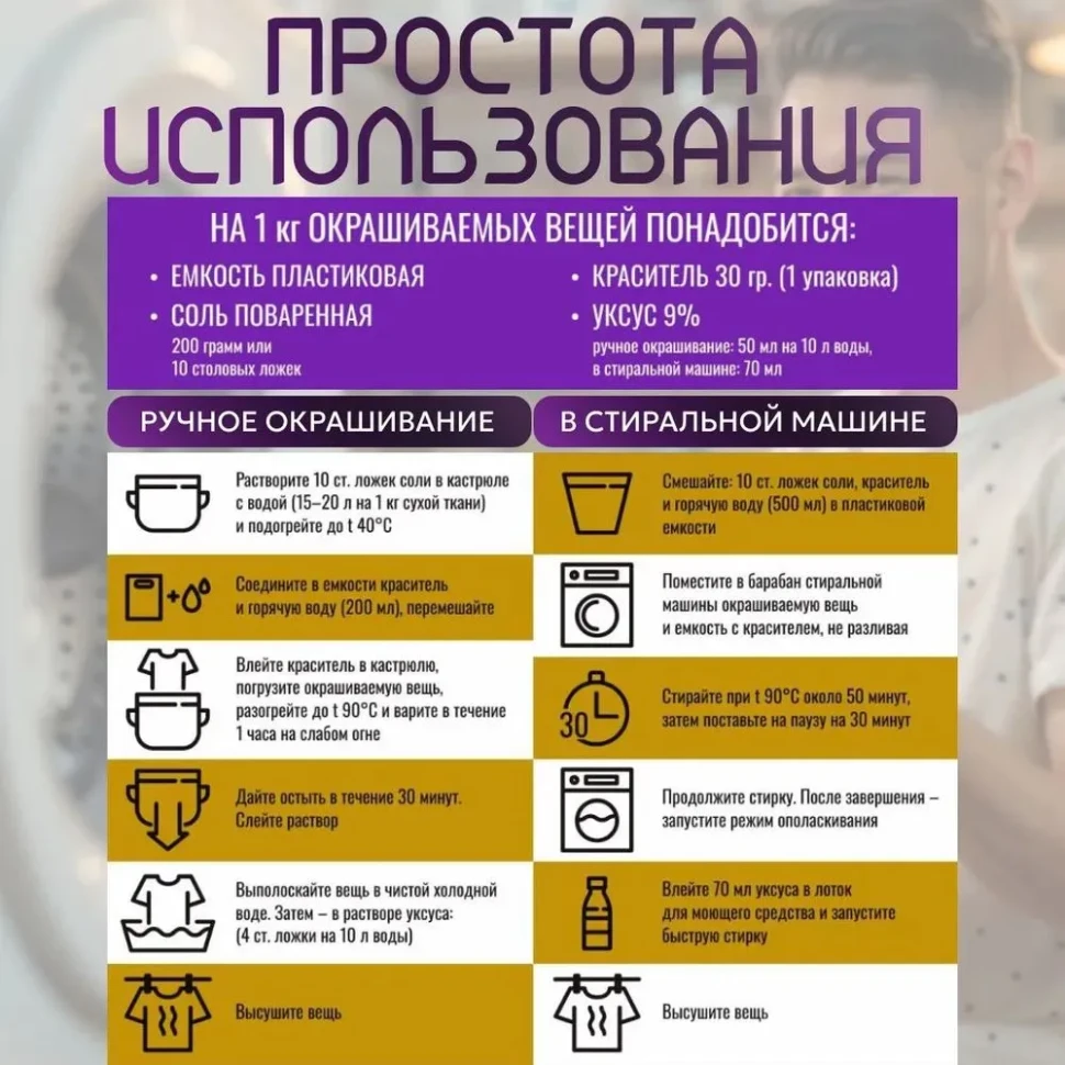 2. Положить в стир.машинку вещи для окрашивания и емкость с раствором красителя